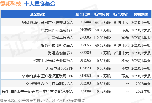 根据2023Q1季报公募基金重仓股数据,重仓该股的公募基金共8家,其中持有数量最多的公募基金为招商移动互联网产业股票基金A。招商移动互联网产业股票基金A目前规模为17.31亿元,最新净值1.3868(7月10日),较上一交易日下跌0.65%,近一年下跌3.68%。该公募基金现任基金经理为张林。张林在任的基金产品包括:招商科技创新混合A,管理时间为2020年2月12日至今,期间收益率为19.77%。