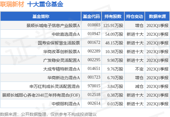 根据2023Q1季报公募基金重仓股数据,重仓该股的公募基金共10家,其中持有数量最多的公募基金为景顺长城电子信息产业股票A。景顺长城电子信息产业股票A目前规模为29.39亿元,最新净值1.1676(7月10日),较上一交易日下跌0.46%,近一年上涨5.47%。该公募基金现任基金经理为杨锐文 张雪薇。杨锐文在任的基金产品包括:景顺长城优选混合,管理时间为2014年10月25日至今,期间收益率为238.89%;景顺长城环保优势股票,管理时间为2016年3月15日至今,期间收益率为210.6%;景顺长城创新成长混合,管理时间为2019年10月17日至今,期间收益率为57.75%;景顺长城成长领航混合,管理时间为2020年5月28日至今,期间收益率为25.35%。张雪薇在任的基金产品包括:景顺长城研究精选股票,管理时间为2023年5月13日至今,期间收益率为9.93%。