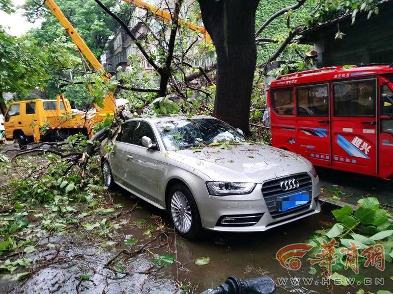 今年2月,市民孙先生花费14.5万元购买了一辆15年的二手奥迪A4L。孙先生说,虽然是二手车,但这辆车的车况很不错。7月18日晚,他将车停在西安市建国三巷与先锋巷附近。第二天上午7时,他接到了一通电话,对方称“路旁一棵行道树倒了,砸坏了他的车”,他赶忙查看,发现已经有城管在处理现场,他的车已经损坏,“我问城管,车坏了咋办,对方让我先走自己的商业保险。”他随即联系4S店进行维修。