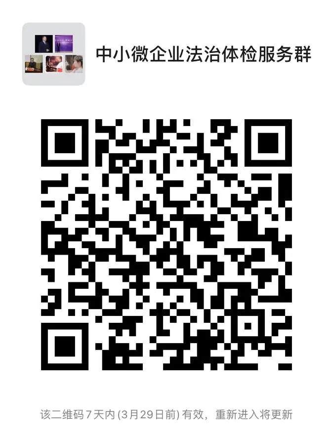可通过扫描下方二维码进群,进行线上“一对一”法治体检,