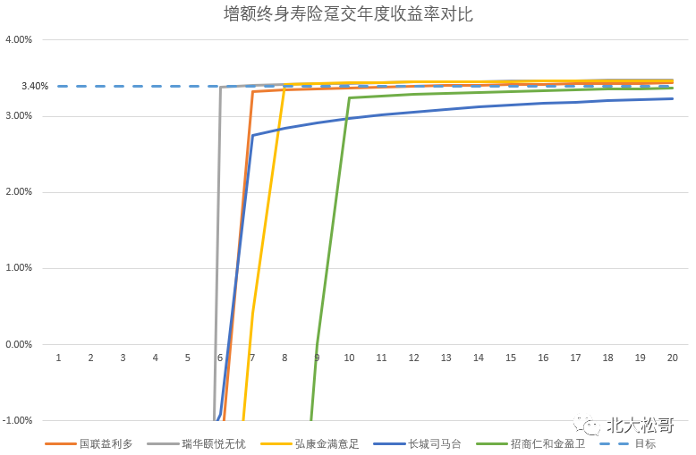 增额终身寿险的收益率,存在一段明显的成长期,接近自身上限之后则趋于稳定。