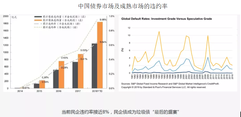 在中国,评级机构对发行人主体及债项评级区分程度比较低,发行人评级集中于AAA、AA+和AA三个评级。且中国信用债市场规则不太健全,违约事件发生后,发行人可以通过协商展期、回售劝退、场外兑付等方式避免以事实违约的债项被统计在违约率数据当中,所以中国的市场暂时还缺乏较为权威准确的违约率统计数据。但在成熟的市场当中,由于评级机构评级区分程度较高,为发行人及债项授予的评级会有数十个子级之多的区别,且成熟市场法律机制较为健全,信用评级机构能够按照年度单位公布前一年的全市场违约率,分行业违约率,投资投机级违约率及评级转移矩阵等数据。评级转移矩阵显示了评级随时间向上或向下转移的可能性。评级转移矩阵既反映了发行人信用资质随时间推移所产生的变化,也可以用来检验评级机构评级模型的稳定性。