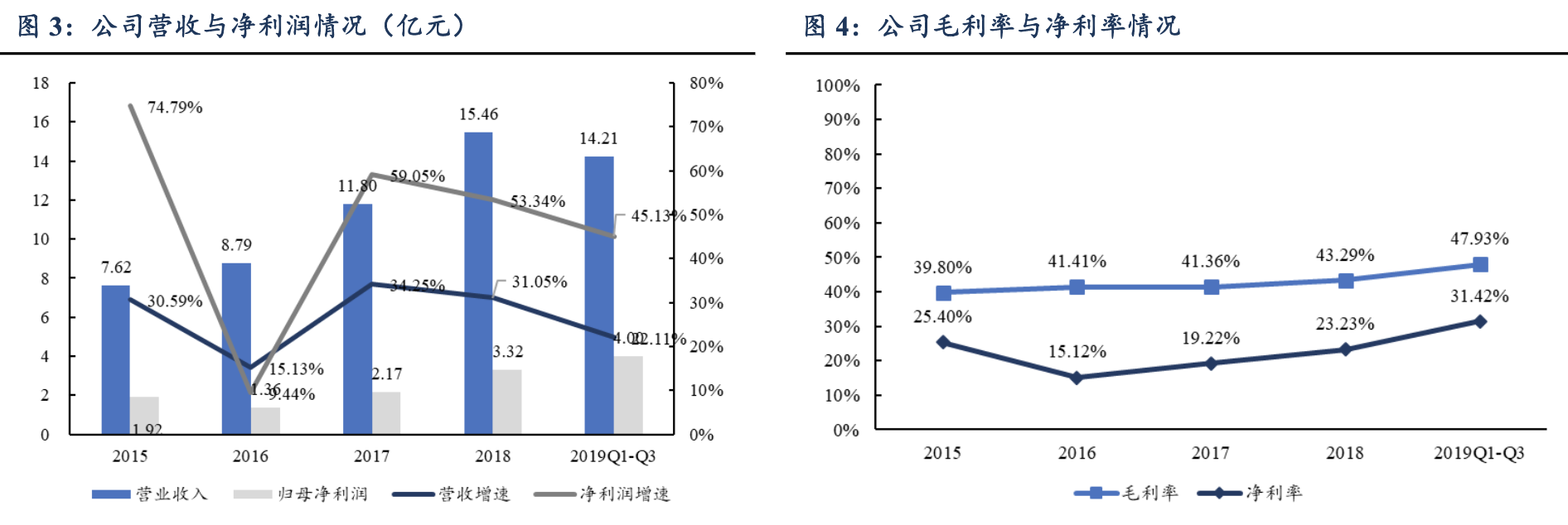 公司经营稳定,整体业绩基本实现稳定增长。2018年公司收入与净利润增速分别为31.05%和53%,2015年至今的复合增速分别为26.6%和20.02%,处于快速增长期。同时,公司毛利率与净利率逐年提高,公司效率稳步提升。我们认为公司整体业务2019年仍有望维持稳定增长。公司老店逐渐达到盈亏平衡并开始贡献利润。随着新开店的逐渐增加,我们认为公司的毛利率和净利率有望稳定增长。