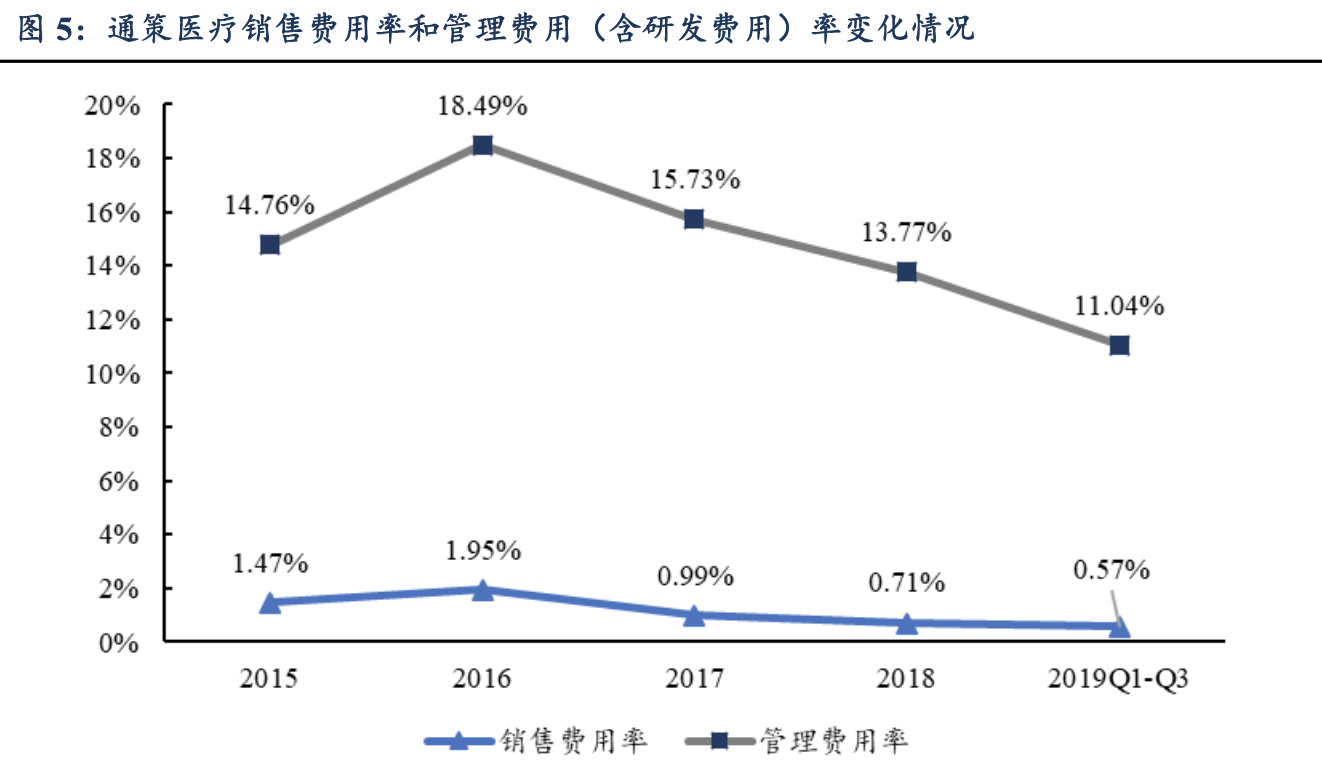 通策医疗的销售费用率和管理费用率一直处于较低水平,且从2016年至今,其两费费率仍然逐年降低,2019年上半年销售费用率和管理费用率分别为0.60%和12.19%。我们认为主要是规模效应不断显现。