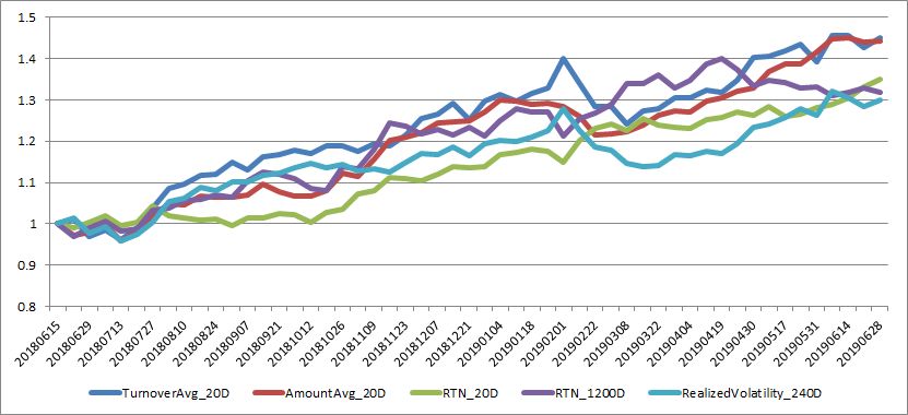 图9-图11我们给出了价值、成长、反转、情绪、交易行为和规模6大类风格因子过去三年以来的表现。过去一周价值、成长、反转、情绪、交易行为和规模因子的行业中性多空收益分别为-0.52%、0.83%、0.22%、0.59%、0.16%和-1.29%。