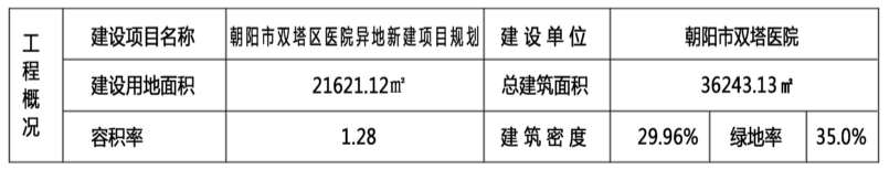 朝阳双塔区医院异地新建位置在河东中央公园东侧东外环与黄河路路口东南角,占地21621.12平方米,建筑面积36243.13平方米。