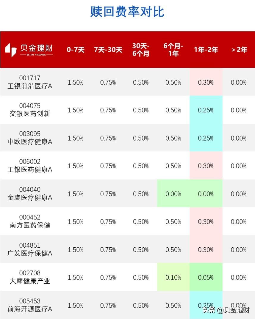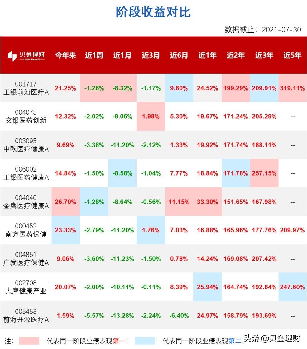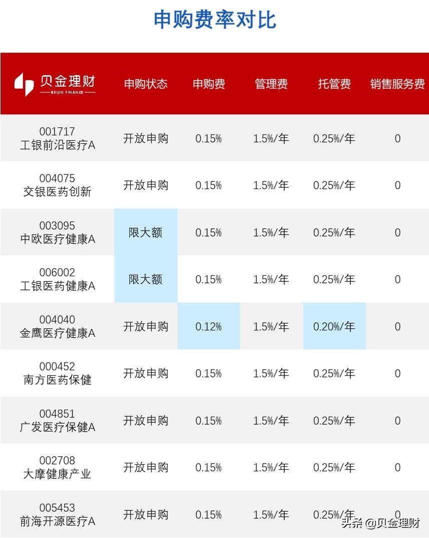 广发医疗保健A、工银前沿医疗A、交银医药创新、中欧医疗健康A、工银医药健康A