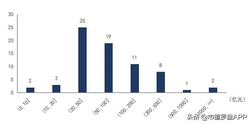图1:2022年7月15日中国中药II上市公司市值分布(单位:家)