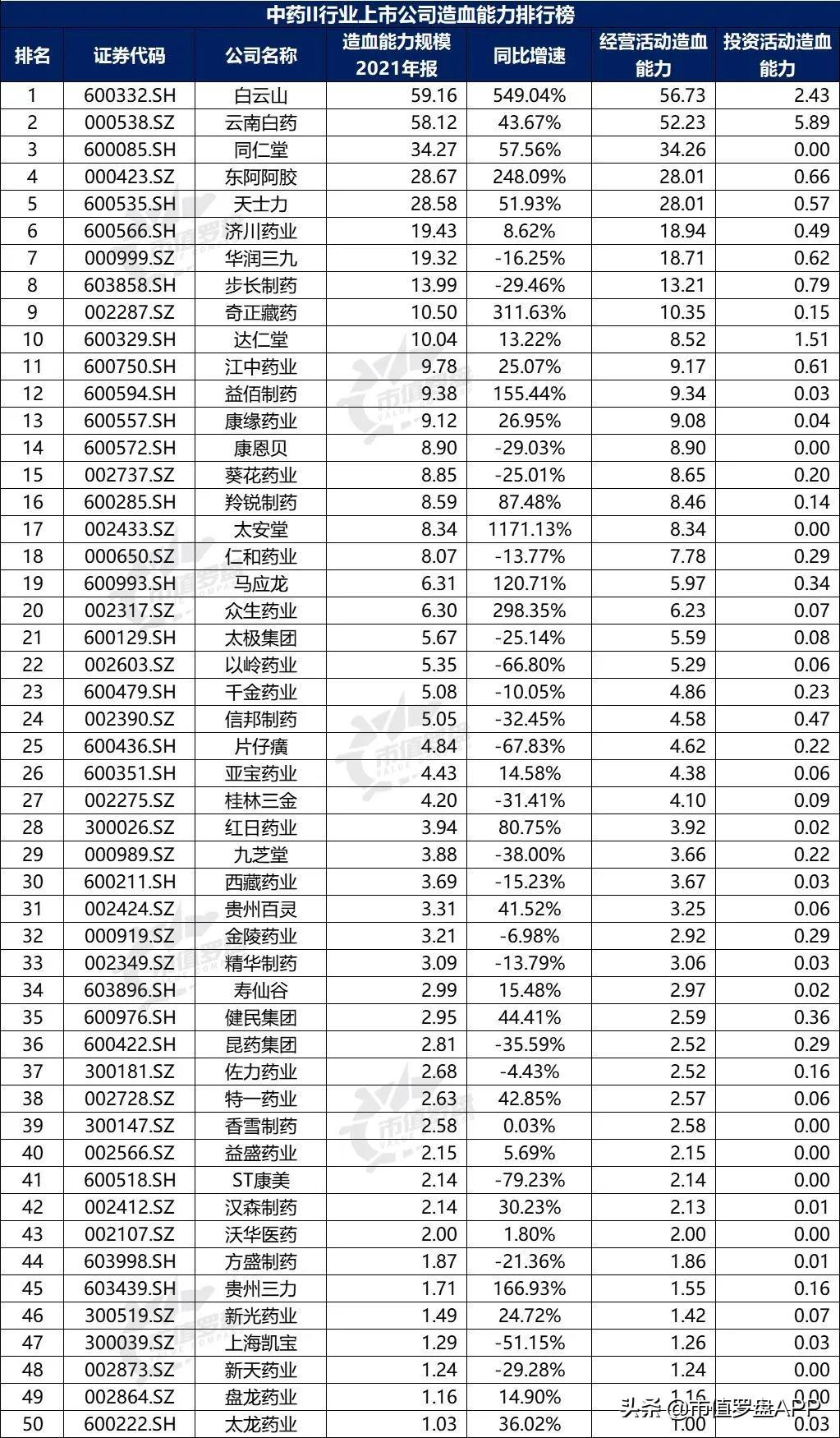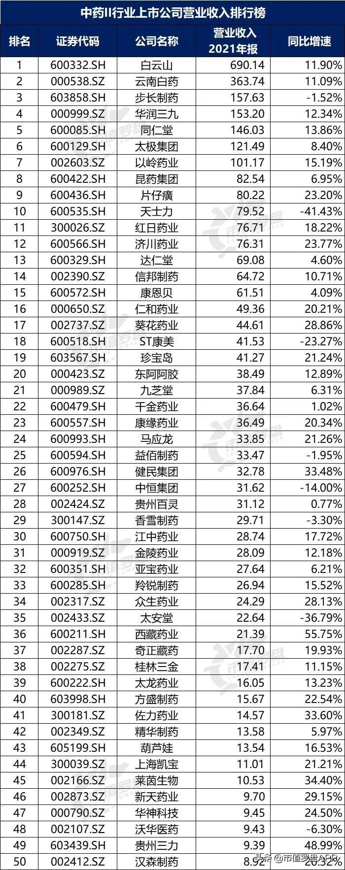 「医药观察」中国A股中药II上市公司高质量发展排行榜-比云南白药更强的公司