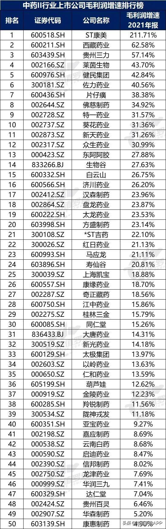 2021年中国中药II上市公司56家实现毛利润增长,15家毛利润出现下滑,中国中药II大部分上市公司产品盈利改善。