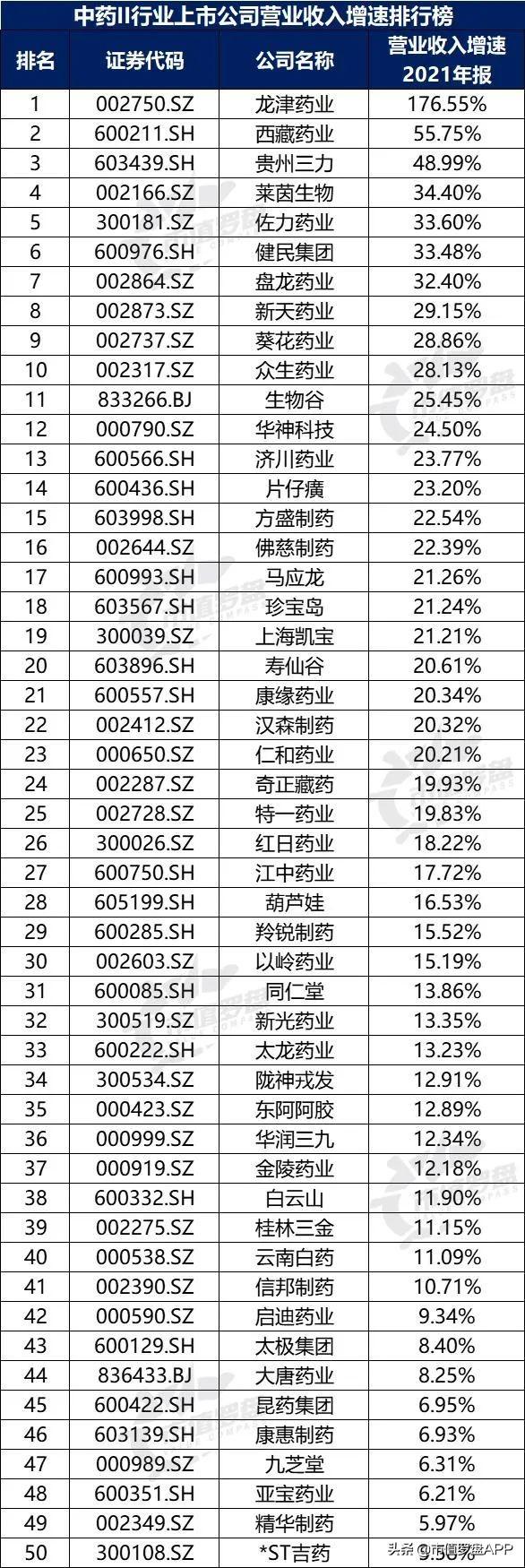 此外,57家中国中药II企业营业收入实现增长,其中2家企业实现了50%以上的高速增长,1家企业增幅更是超过100%。