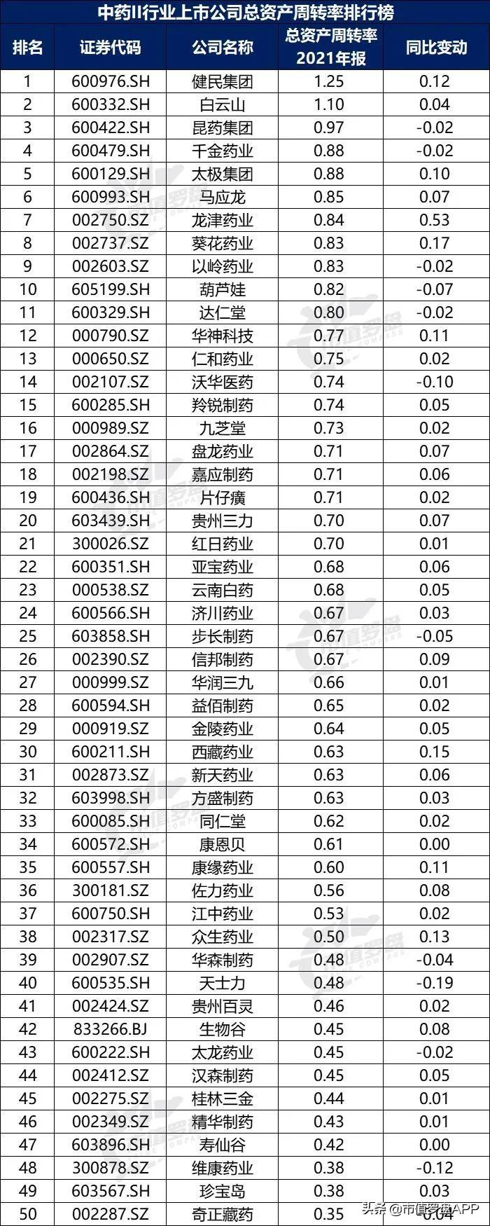 图13-1:中国中药II上市公司总资产周转率排行榜