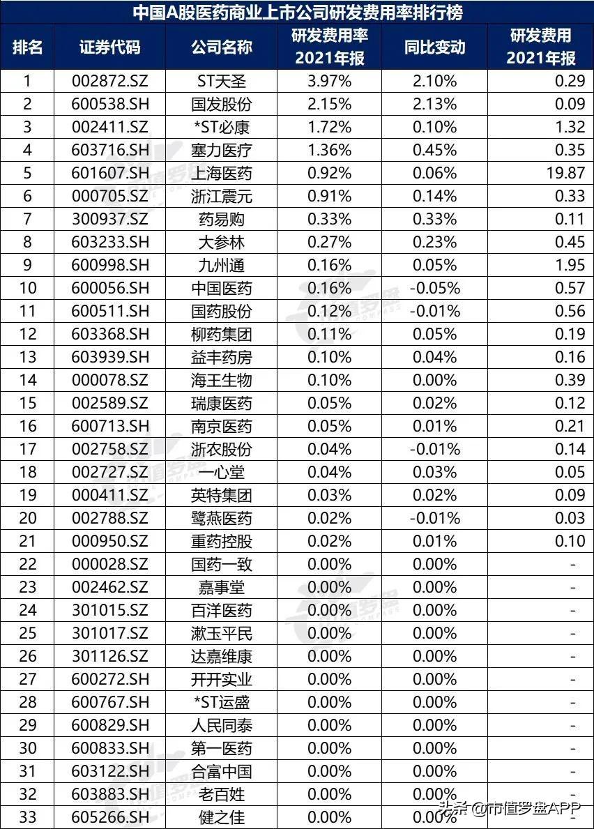 图12:中国A股医药商业上市公司研发费用排行榜