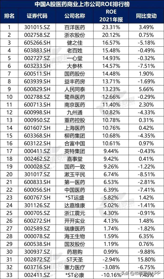 图9:中国A股医药商业上市公司ROE排行榜