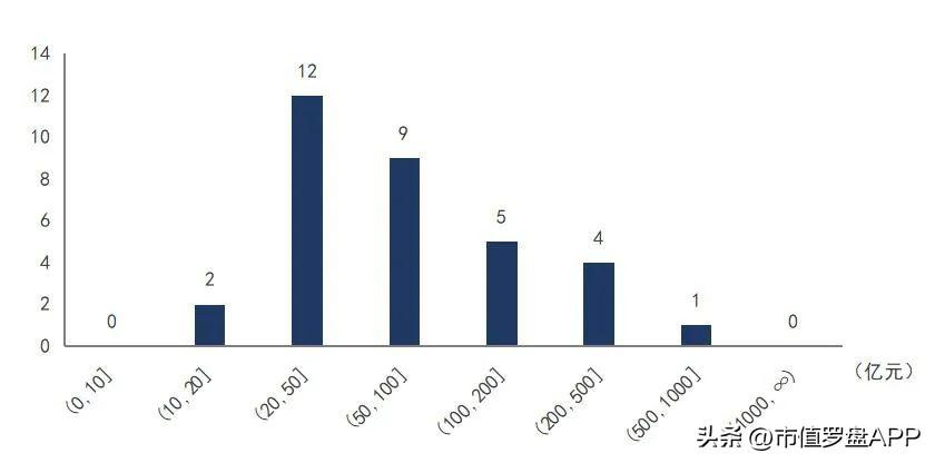 图1:2022年7月15日中国A股医药商业上市公司市值分布(单位:家)