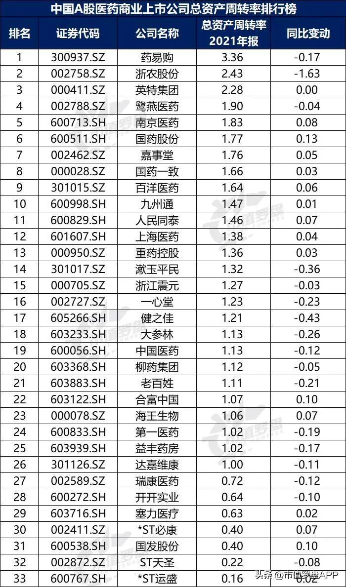 图13-1:中国A股医药商业上市公司总资产周转率排行榜