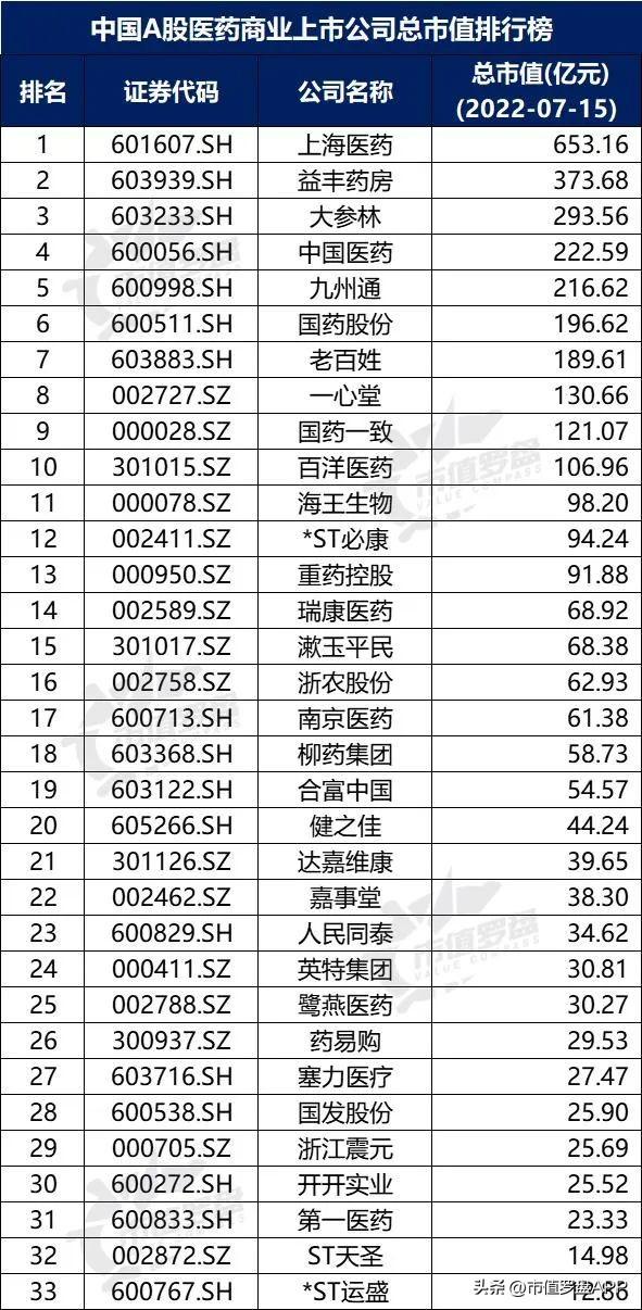 图2:中国A股医药商业上市公司总市值排行榜