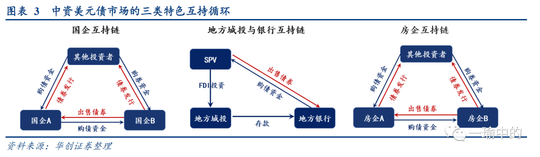 特别的是,中资美元债市场还形成了一些具有特色的互持循环,