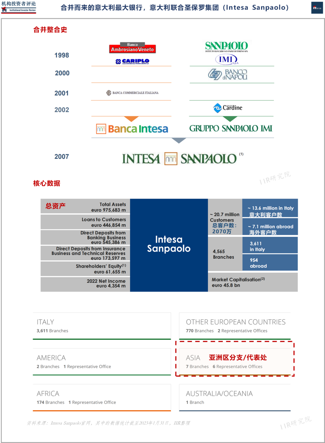 总资产近万亿欧元,在意大利拥有3600余个分支,零售业务、公司业务和财富管理领域,都是该国的领导者。