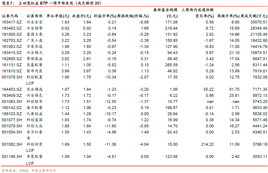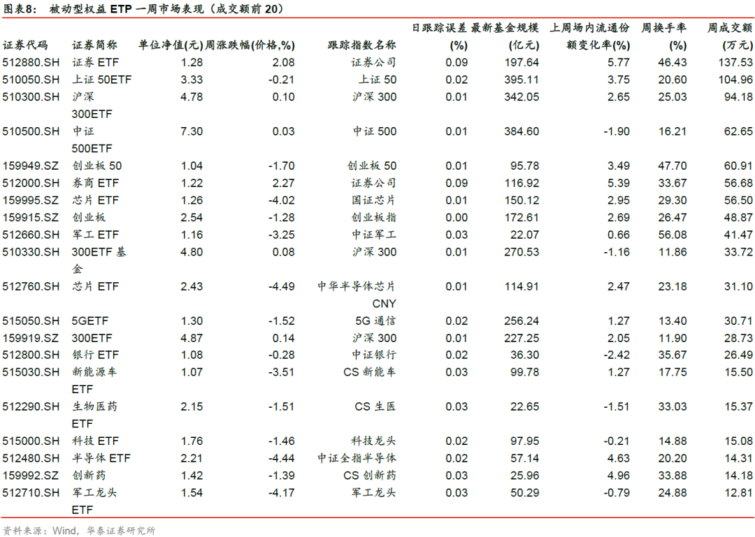权益类ETP表现不佳,成交额前20的主动型、被动型权益ETP多数下跌