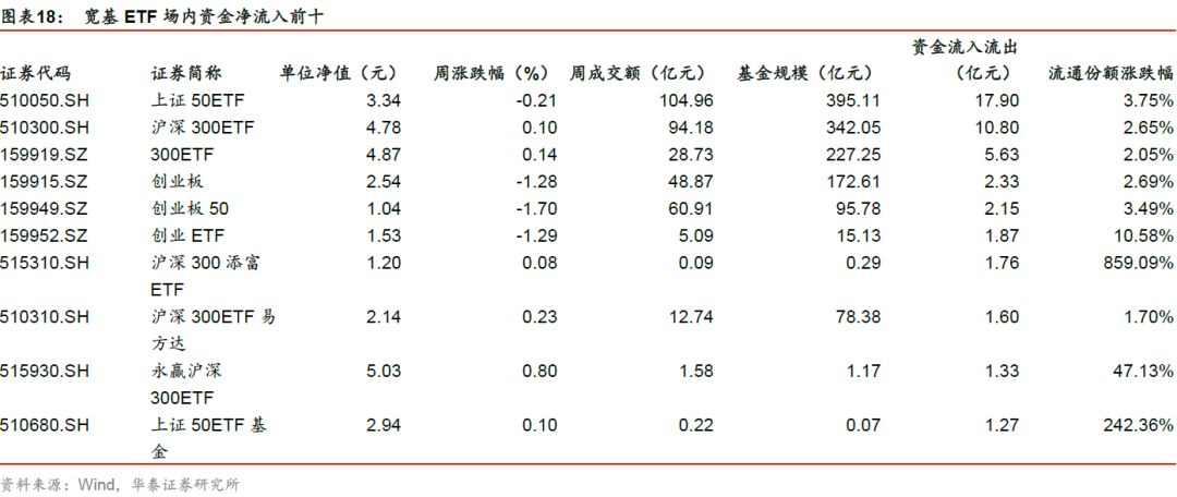 上周宽基ETF中,上证50ETF(510050.SH)资金净流入最多,为17.90亿元。中证500ETF(510500.SH)资金净流出最多,为6.19亿元。