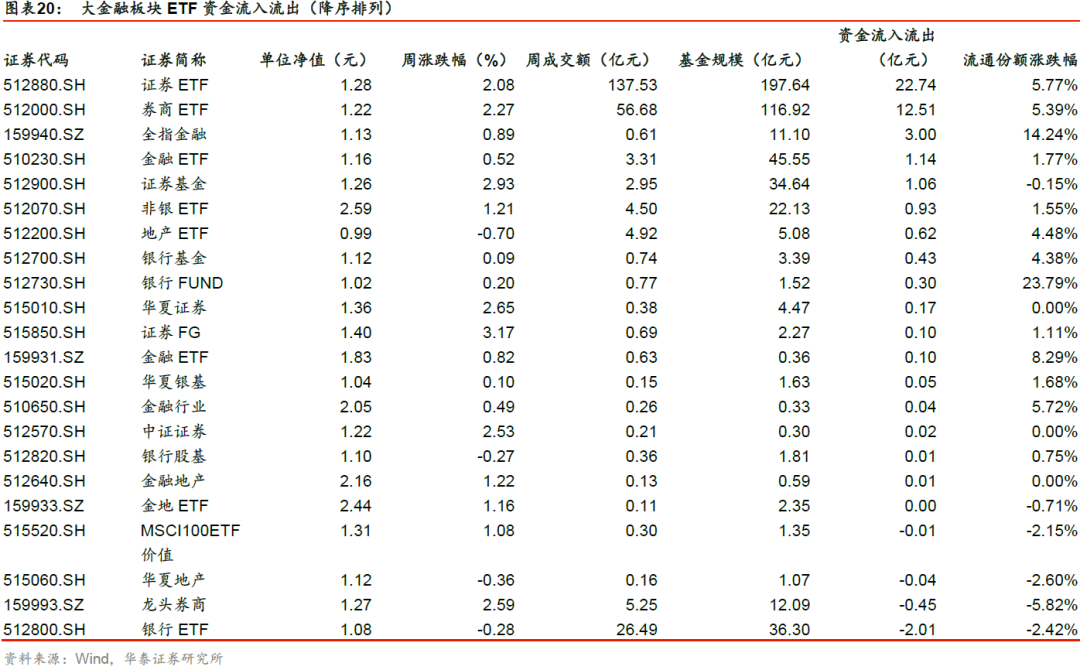 金融周期板块多数ETF资金净流入,消费成长板块多数ETF资金净流出