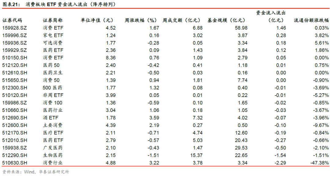 上周ETF中,800ETF基金(515820.SH)场内流通份额增幅最大,为285.41%,流通份额增至945.26万份。消费行业ETF(510630.SH)场内流通份额降幅最大,上周降幅达47.38%,目前场内流通份额降为560.90万份。