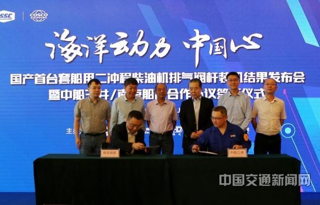 9月27日,南京中远海运船舶设备配件有限公司(以下简称“南京船配”)在中船三井造船柴油机有限公司(以下简称“中船三井”)召开发布会,其自主研制的国产船用柴油机二冲程排气阀杆顺利通过台架试验,圆满实现首台套装机。这是我国自主研发的船用柴油机二冲程排气阀杆首次在船舶上应用。