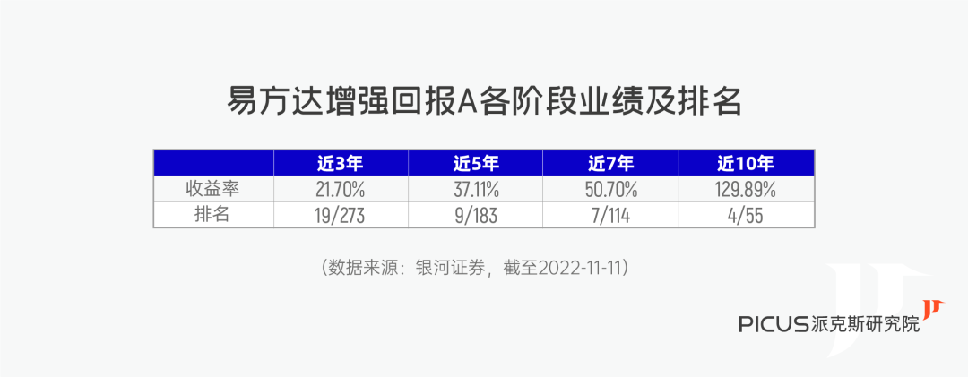 管理以来收益率达120.21%,年化收益率9.50%,近1年、3年收益率都排名同类前4%,更长期的近5年、7年也都是同类季军,投资表现持续优异。