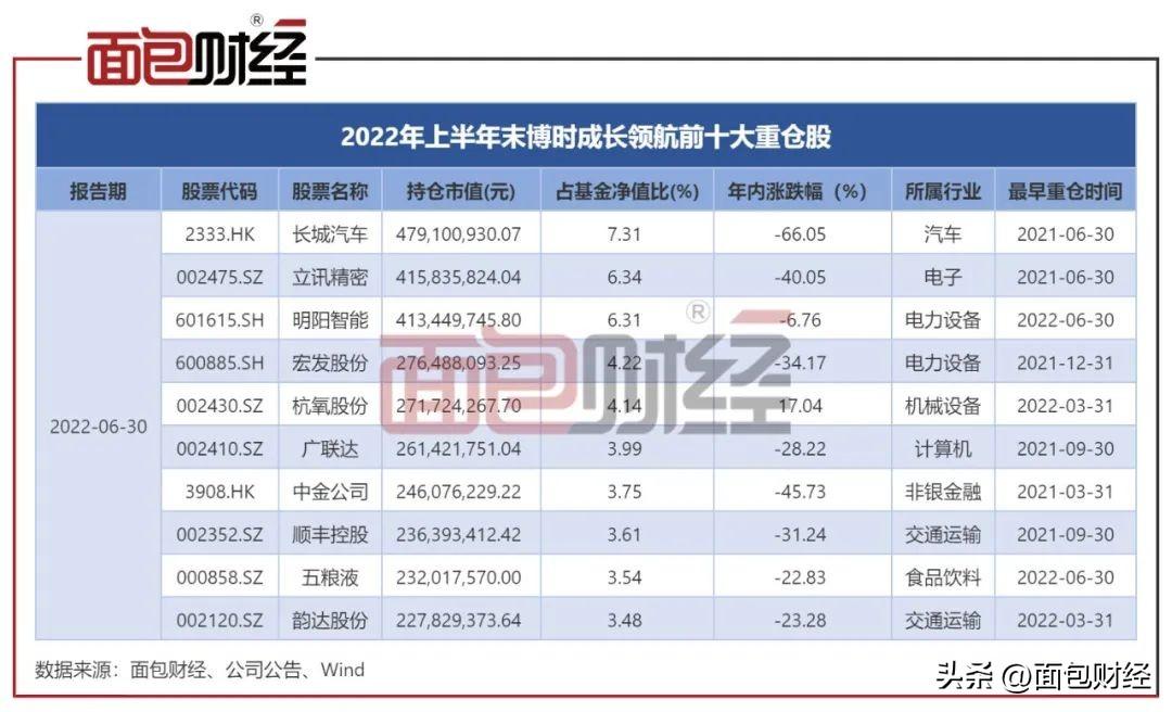 研究博时成长领航的持仓发现,该基金2022年二季度末的第一大重仓股长城汽车(港股)今年以来股价大幅下挫,截至9月30日累计下跌超过六成。