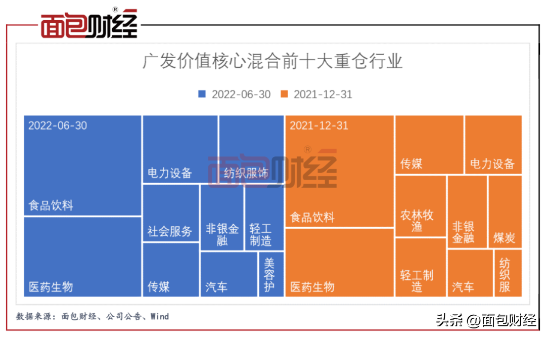 分析基金持仓发现,按照申万一级行业分类,广发价值核心混合持续重仓食品饮料、医药生物这两大行业。
