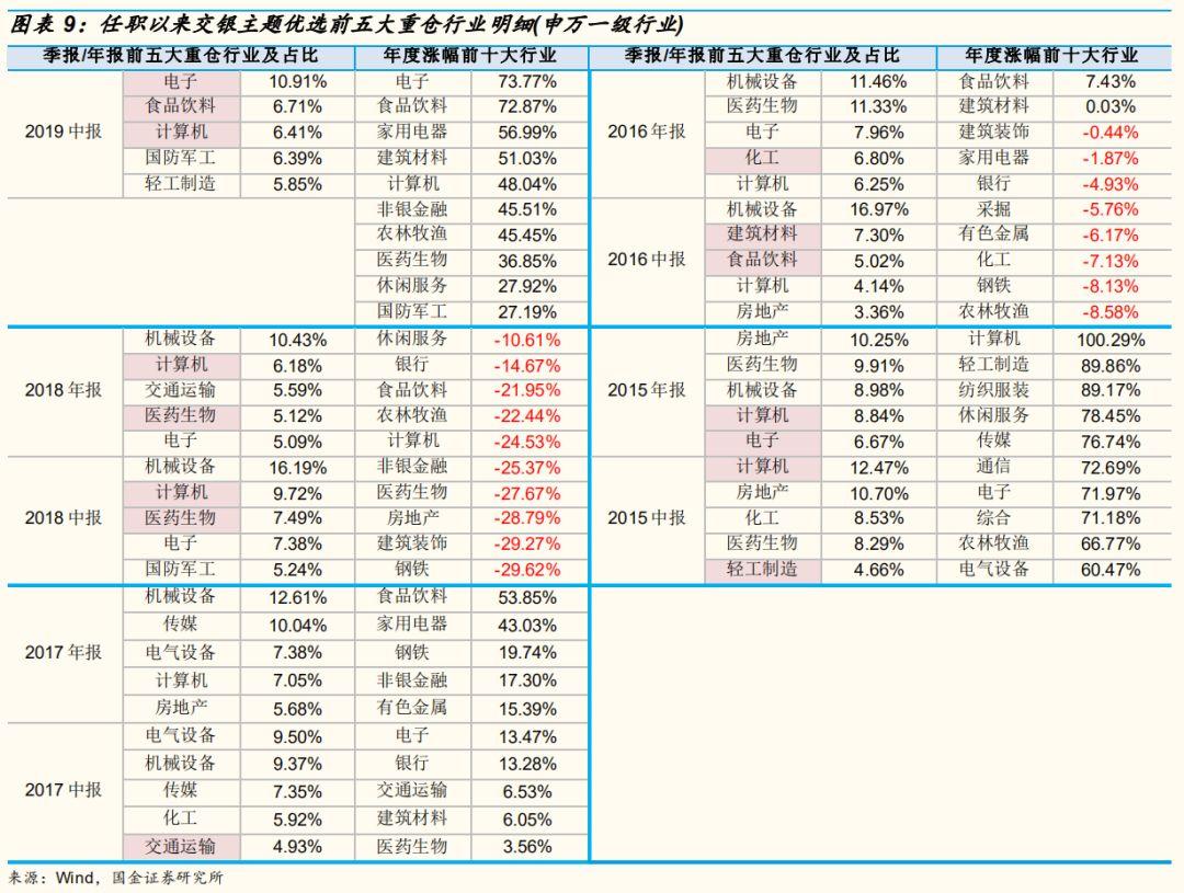 精准把握景气且具有弹性的行业是沈楠自上而下投资的关键致胜环节。宏观策略背景让沈南的能力圈涵盖绝大多数行业,“100~200个二三级行业每个都比较仔细看,”且几无偏好侧重,更有利于在宏观趋势预判下捕捉各阶段不同行业的投资机会。每季度配置的细分行业约为25个,相对持续重仓的有机械设备、计算机、电子等成长板块,但也曾阶段性侧重房地产、化工等周期行业。多年来沈楠对不同行业的景气度跟踪较多,且培养出了较强的周期思维,能够判断出行业所处的周期位置、较好把握未来的发展趋势和景气度的变化,从而在行业之间比较优选出景气度高或景气反转、更具弹性的领域。从实际效果来看,沈楠正是多次把握当年回报率排名前十的行业,进而逐步增厚其管理期间的超额收益。