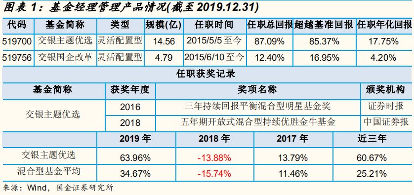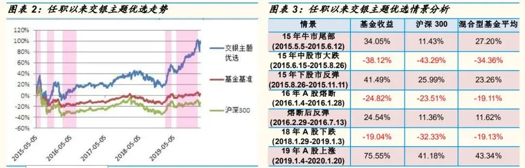 截至2019年底,“交银主题优选”沈楠任职近五年期间超额回报85.37%、年化绝对回报17.75%;