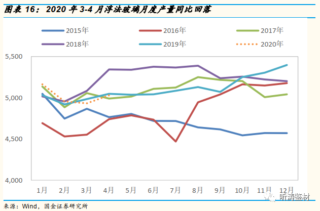 在产业政策和环保的双重压力下,新增产能增速放缓,供给取决于冷修及复产产能。受疫情影响,市场再现产线集中冷修情形,同时复产产线较少,供给净减少7700t/d。我们认为,2020年玻璃价格走势与2019年类似。下半年随着地产竣工周期的启动,玻璃价格回升可期,全年玻璃均价75元/重箱,较当前的价格上涨3元/重箱。2022年起,随着地产竣工周期结束,玻璃价格可能出现回落。供需格局改善,短期价格上涨可期:在产业政策和环保的双重压力下,新增产能增速放缓,供给取决于冷修及复产产能。受疫情影响,市场再现产线集中冷修情形,同时复产产线较少,供给净减少7700t/d。我们认为,2020年玻璃价格走势与2019年类似。下半年随着地产竣工周期的启动,玻璃价格回升可期,全年玻璃均价75元/重箱,较当前的价格上涨3元/重箱。2022年起,随着地产竣工周期结束,玻璃价格可能出现回落。