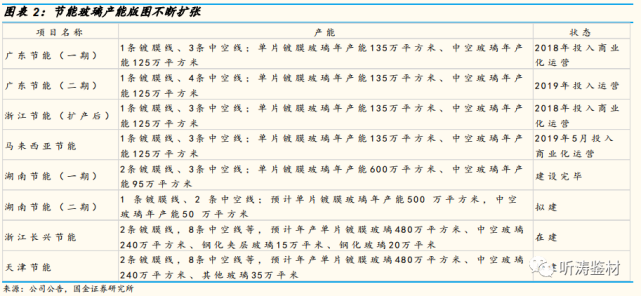 根据公司公告,未来湖南节能二期、长兴节能和天津节能项目投产后,镀膜玻璃年产能增至2600万平方米,中空玻璃年产能增至1125万平方米。