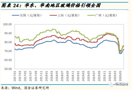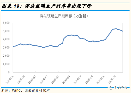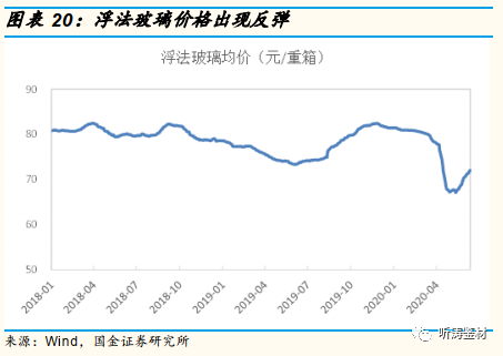 2020年4月份开始,随着复工复产的推进,下游需求开始恢复、物流运输趋于正常,部分窑龄到期产线也选择在这一阶段集中冷修,供需基本面不断好转。此外,玻璃原片厂家也在频繁向下调整价格,用以消化库存。2020年4月底,玻璃价格跌至67元/重箱,玻璃库存降至5188万重箱。
