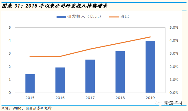 公司历来以建筑玻璃原片生产销售业务为主,受下游房地产景气影响较大,产品周期性较强。为抵御原片价格的周期性波动,近年来公司积极推进产业链延伸和转型升级,并在中长期发展战略规划纲要(2019-2024)中做了明确指示,研发费用也随之大幅增加。一方面,公司不断提高玻璃原片质量和附加值,增强竞争力,同时布局深加工领域;另一方面,则加速向高端产品领域进军,如超白低铁光伏光电玻璃、高性能电子玻璃领域、中性硼硅药用玻璃等,并不断取得突破。