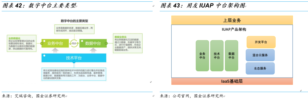 用友的中台战略主要依托IUAP平台连接上层业务和IaaS基础层。