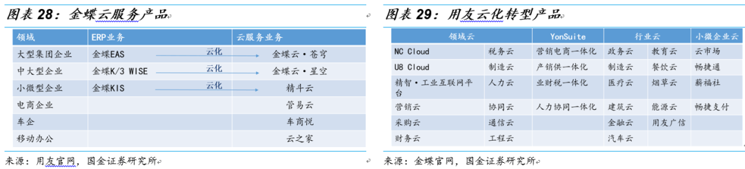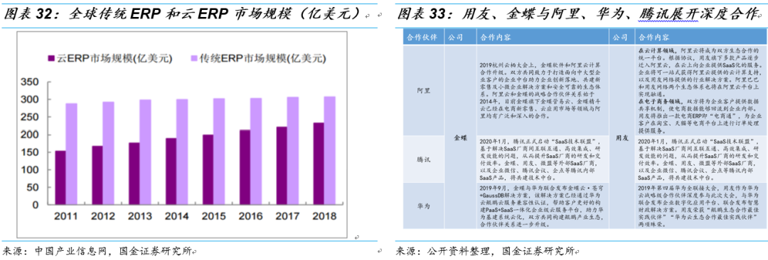 金蝶、用友加速与阿里、腾讯、华为等公有云巨头厂商展开合作。