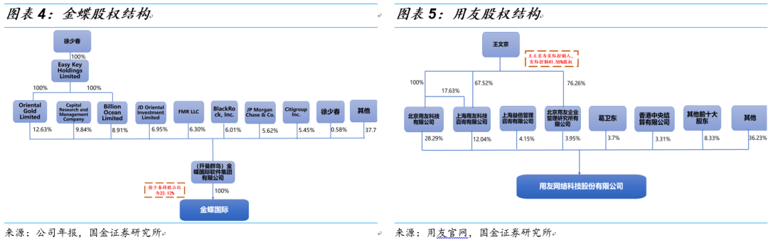1.3 股权结构:金蝶较为分散,用友相对集中