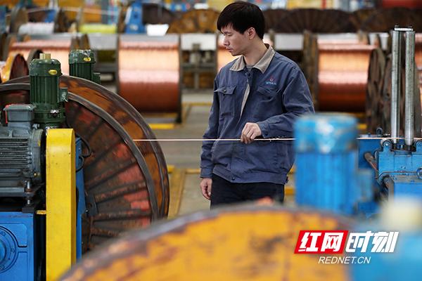金杯电工衡阳电缆有限公司生产车间里,多条生产线紧张运转。