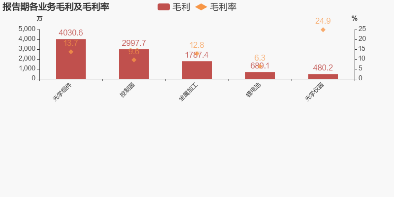 从业务结构来看,“控制器”是企业营业收入的主要来源。具体而言,“控制器”营业收入为3.13亿元,营收占比为35.8%,毛利率为9.6%。