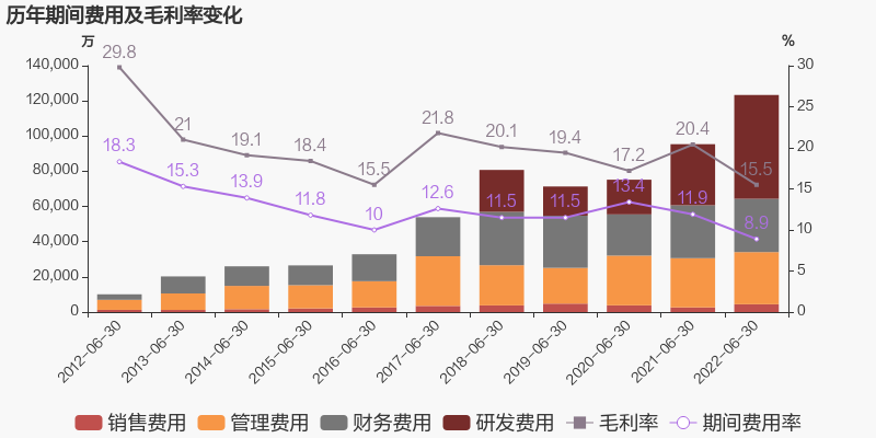 公司2022半年度营业成本117.63亿元,同比增长84.8%,高于营业收入74%的增速,导致毛利率下降4.9%。期间费用率为8.9%,较去年下降3.1%。经营性现金流由3555万元下降至-15.1亿元,同比下降4346.8%。