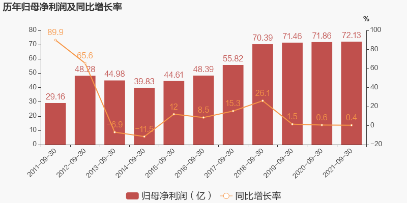 洋河股份于2021年10月27日披露三季报,公司2021年前三季度实现营业总收入219.4亿,同比增长16%;实现归母净利润72.1亿,同比增长0.4%;每股收益为4.82元。