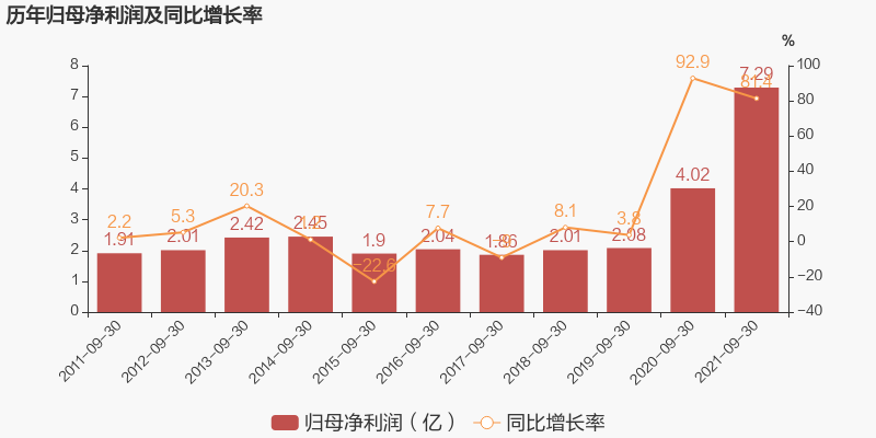 科华生物于2021年10月28日披露三季报,公司2021年前三季度实现营业总收入37.3亿,同比增长45.2%;实现归母净利润7.3亿,同比增长81.4%;每股收益为1.42元。