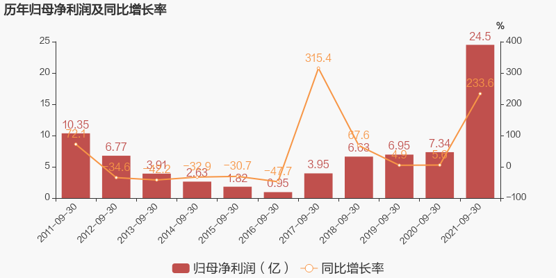 下一篇: 「图解季报」铜陵有色:2021年前三季度归母净利润同比翻2倍,约为24.5亿元-铜陵有色2014年每股收益多少