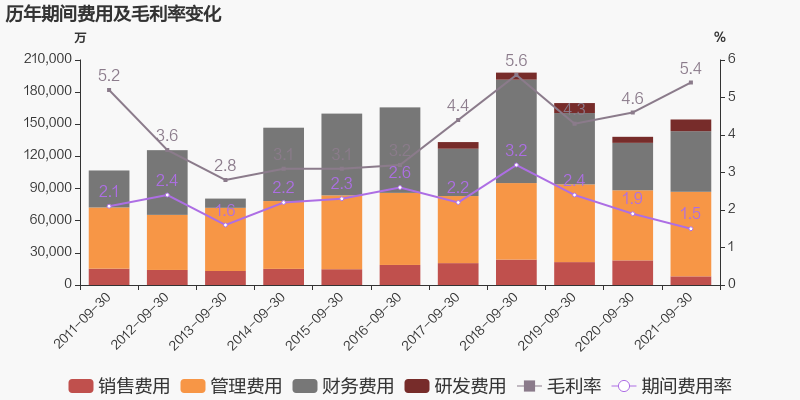 公司2021三季度营业成本952.5亿,同比增长39.1%,低于营业收入40.4%的增速,导致毛利率上升0.8%。期间费用率为1.5%,同去年相比变化不大。